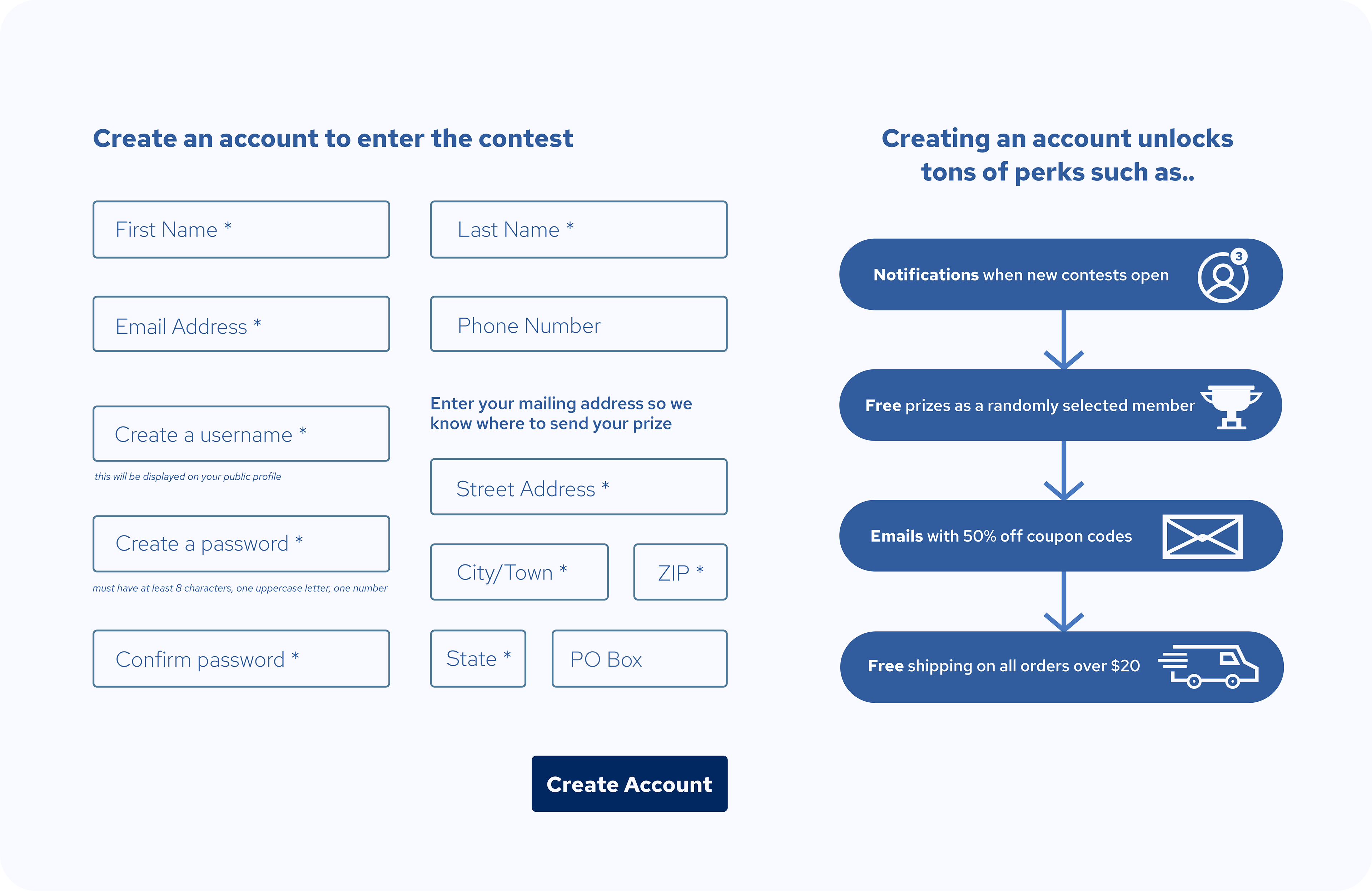 Scenario: The user is trying to view a website to help them buy a car. But, the content can’t load without the user’s location. They need to enter their ZIP code and first name.